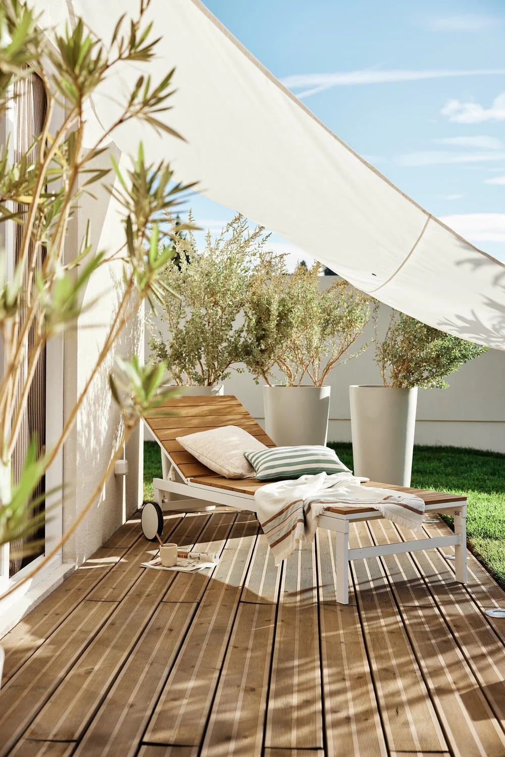 מיטת שיזוף אלומיניום לבן ועץ טיק PERSEA ₪1,590.00
